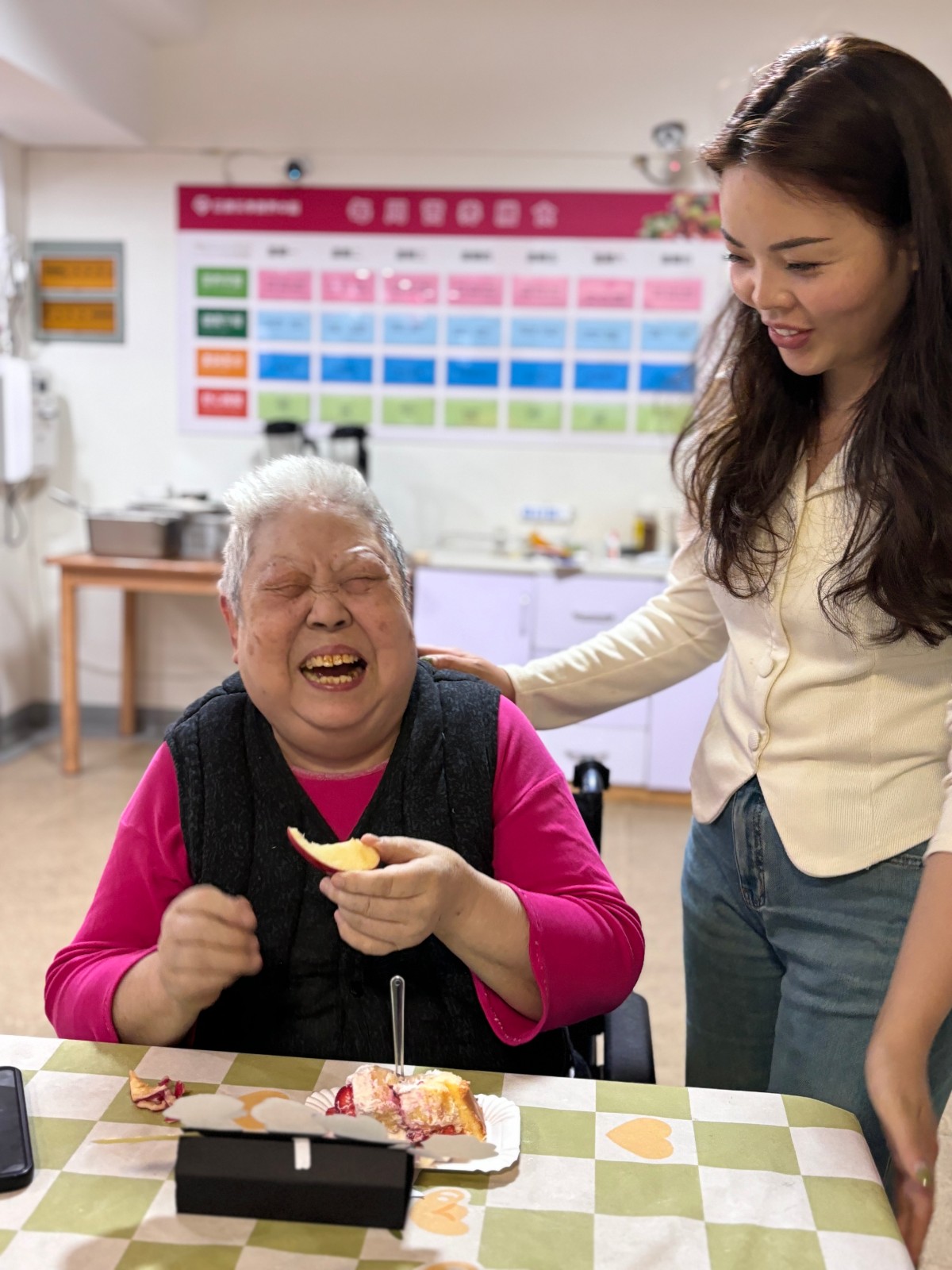 ÔÚ²×ÖÝÄϺþÒÃÑøÖÐÐÄ£¬×𳤡¢¼ÒÊô¡¢Ñ§ÉúÖ¾Ô¸ÕߺÍÔºÄÚÔ±¹¤»¶¾ÛÒ»ÌÃÅäºÏÁª»¶¡£ÀÊËС¢ÊýÀ´±¦¡¢ÌøÎè¡¢³ª¸è¡¢¶þºú¡¢°Ë¶Î½õµÈ½ÚÄ¿ÂÖ·¬ÉÏÑÝ£¬ÏÖ³¡Æø·ÕÈÈÁÒ¶ø»¶Ï²¡£Ã¿Î»Ä¸Ç×¶¼ÊÕµ½ÁËÒ»¶ä¿µÄËܰ£¬Ô¢Òâ׎¡¿µÓëÐÒ¸£¡£×îÄ곤µÄÕÅÄÌÄÌ×÷ΪĸÇ×´ú±í£¬Îª¸÷ÈËÇÐÏÂÁËÃÀζµÄµ°¸â£¬ËýµÄЦÈÝѬȾÁËÔÚ³¡µÄÿһ¸öÈË¡£±ðµÄ£¬Ñ§ÉúÖ¾Ô¸Õß»¹ÎªÀÏÈËÃÇʵ²ÙÁË¡¶ÀÏÄêÊÖÖ¸ÍÆÄñ£½¡¡·£¬ÎªËûÃǽ²½âÑøÉúÊÖÖ¸²Ù£¬²¢ÕÉÁ¿ÑªÑ¹£¬ÓÃʵ¼ÊÐж¯Í¨±¨×Źذ®ÓëÎÂů¡£